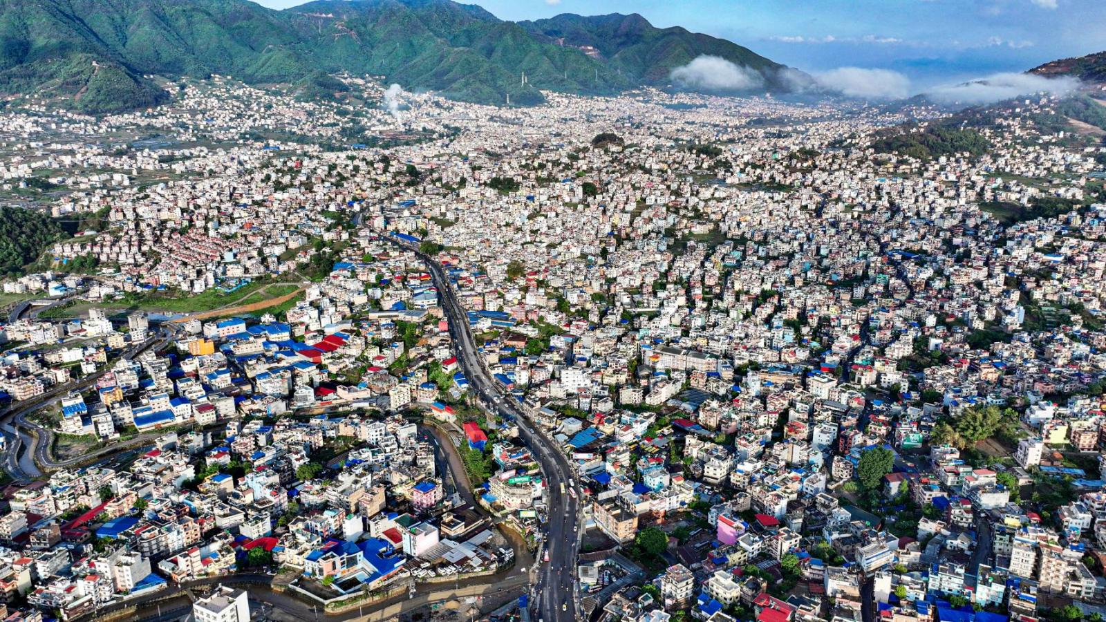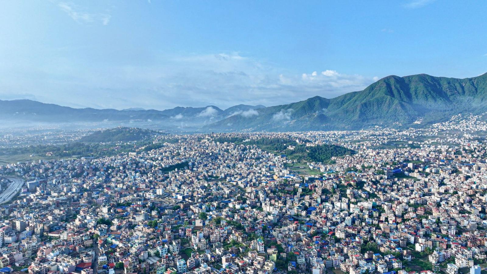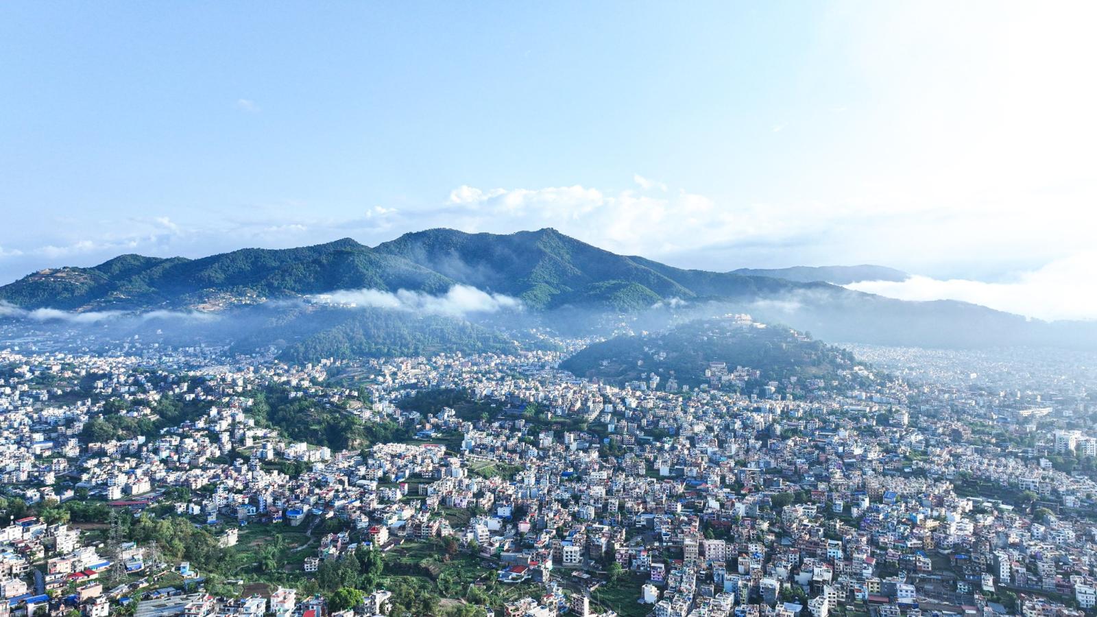 रातभरको वर्षा भएपछि विहानको घामले बाक्लो बादललाई मेटाएर घामको किरण पर्दा उपत्यकाको बाक्लो बस्ती निकै सुल्दर देखिएको छ ।