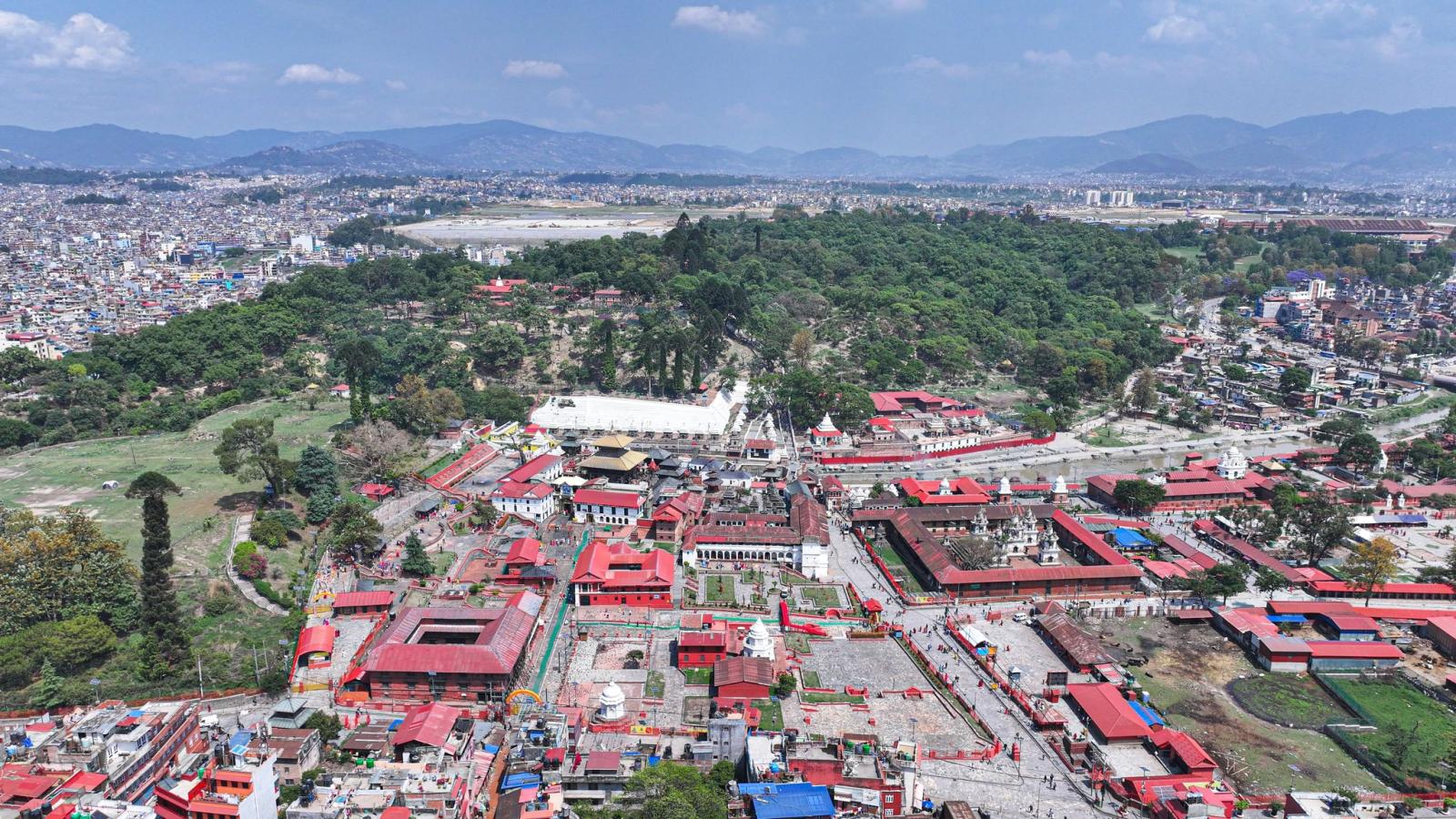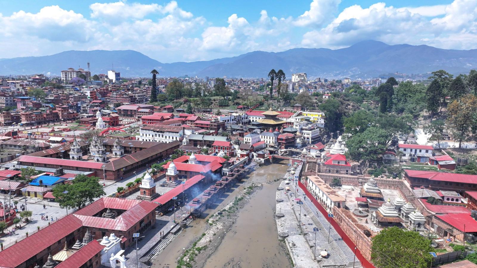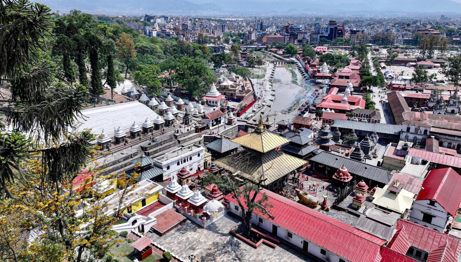 पशुपतिनाथ मन्दिर आकाशबाट हेर्दा झन् भव्य देखिन्छ। सुनौलो गजुर, हरियाली परिवेश र ऐतिहासिक संरचनाले यो स्थललाई अझ मनमोहक बनाउँछ ।