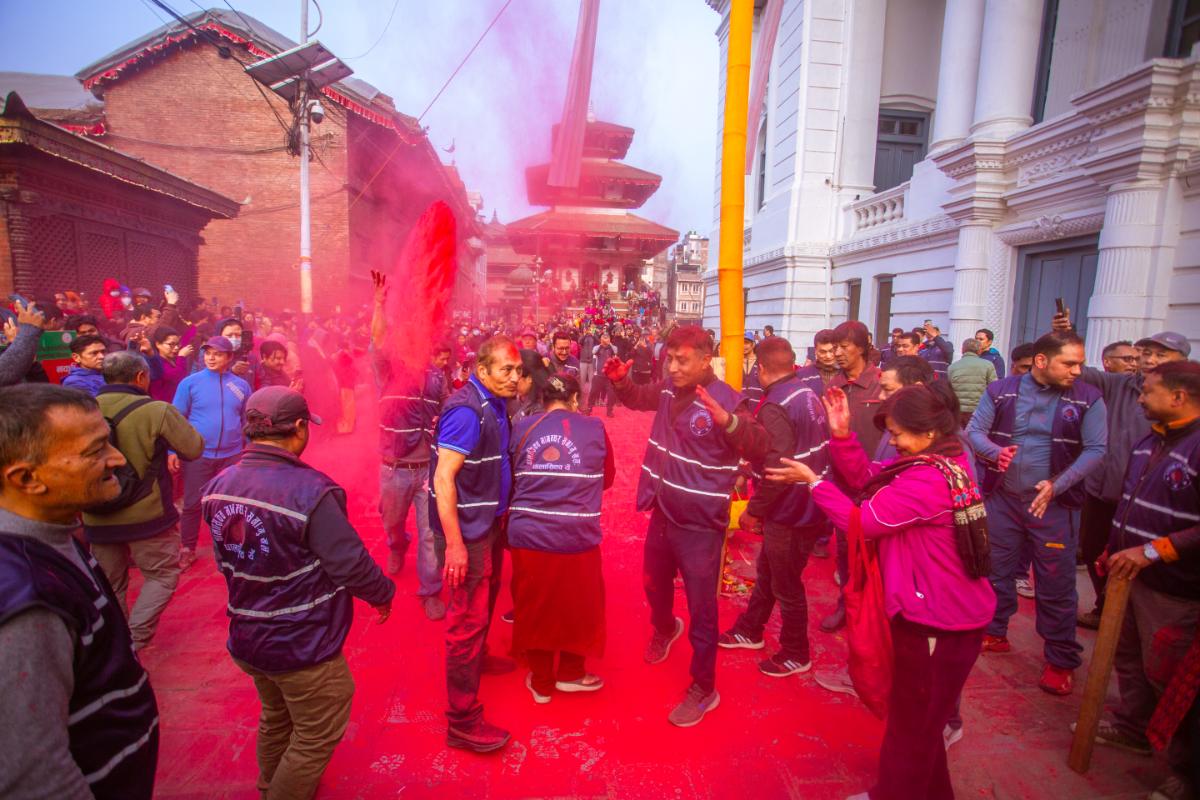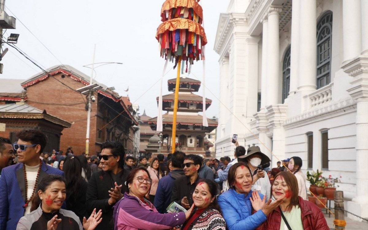२०८२ फागुन १२, काठमाडौं । काठमाडौँको वसन्तपुरमा होलीको चीर ठड्याइएको छ । मंगलबार बिहान रंगीविरंगी कपडाहरूको ध्वजापताकासहितको तीन खण्डे चीर ठड्याइएको हो । यससँगै आजबाट रंगहरुको पर्व होलीको उत्सव औपचारिक रूपमा सुरु भएको छ ।