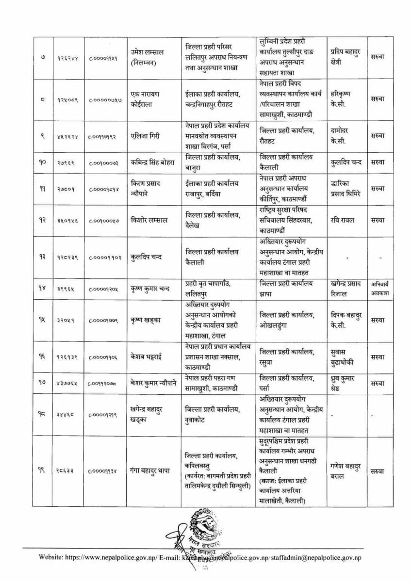 बुधबार प्रहरी महानिरिक्षकको निर्णय अनुसार चैत महिनादेखिको तलब, भत्तासमेत हाल भएको दरबन्दीबाट खान पाउने गरी सरुवा गरिएको मुकुन्द प्रसाद रिजालले बताउनुभयो।