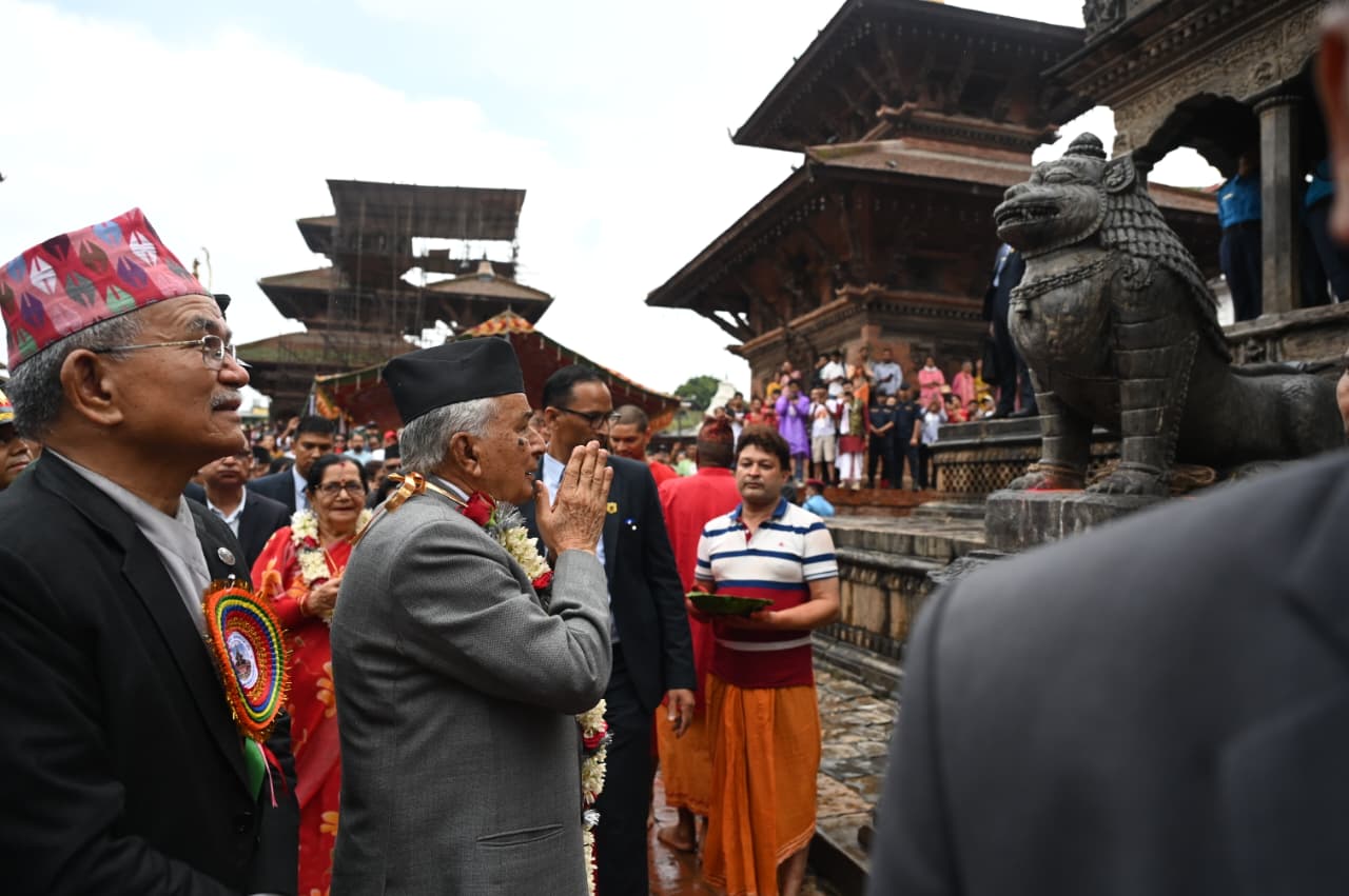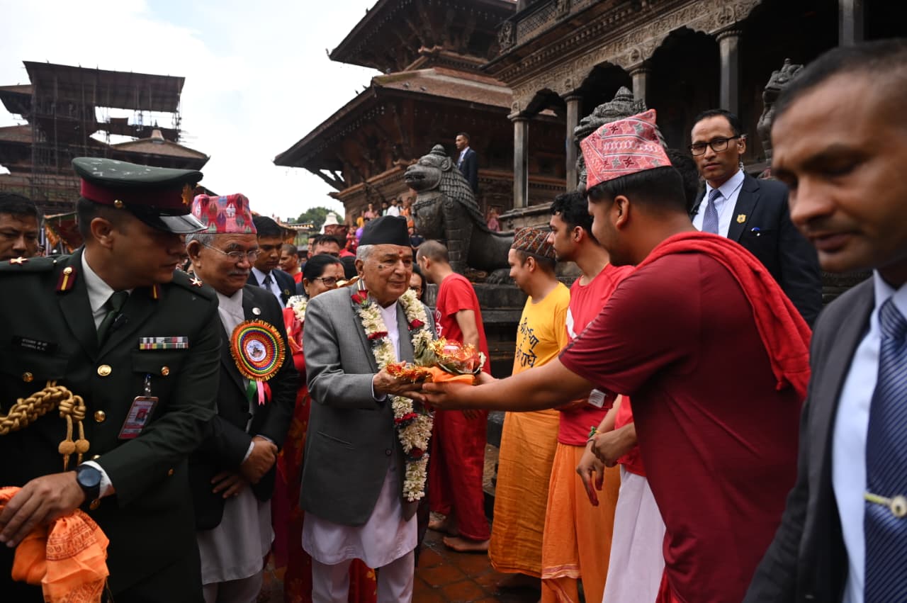 २०८२ साउन ३१, ललितपुर । राष्ट्रपति रामचन्द्र पौडेलले कृष्ण मन्दिरमा भगवान् श्रीकृष्णको पूजा आराधना गरेका छन् ।