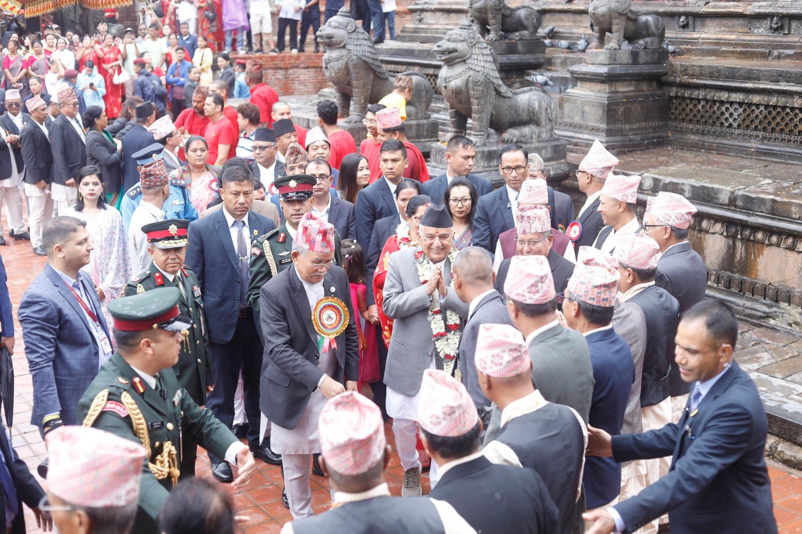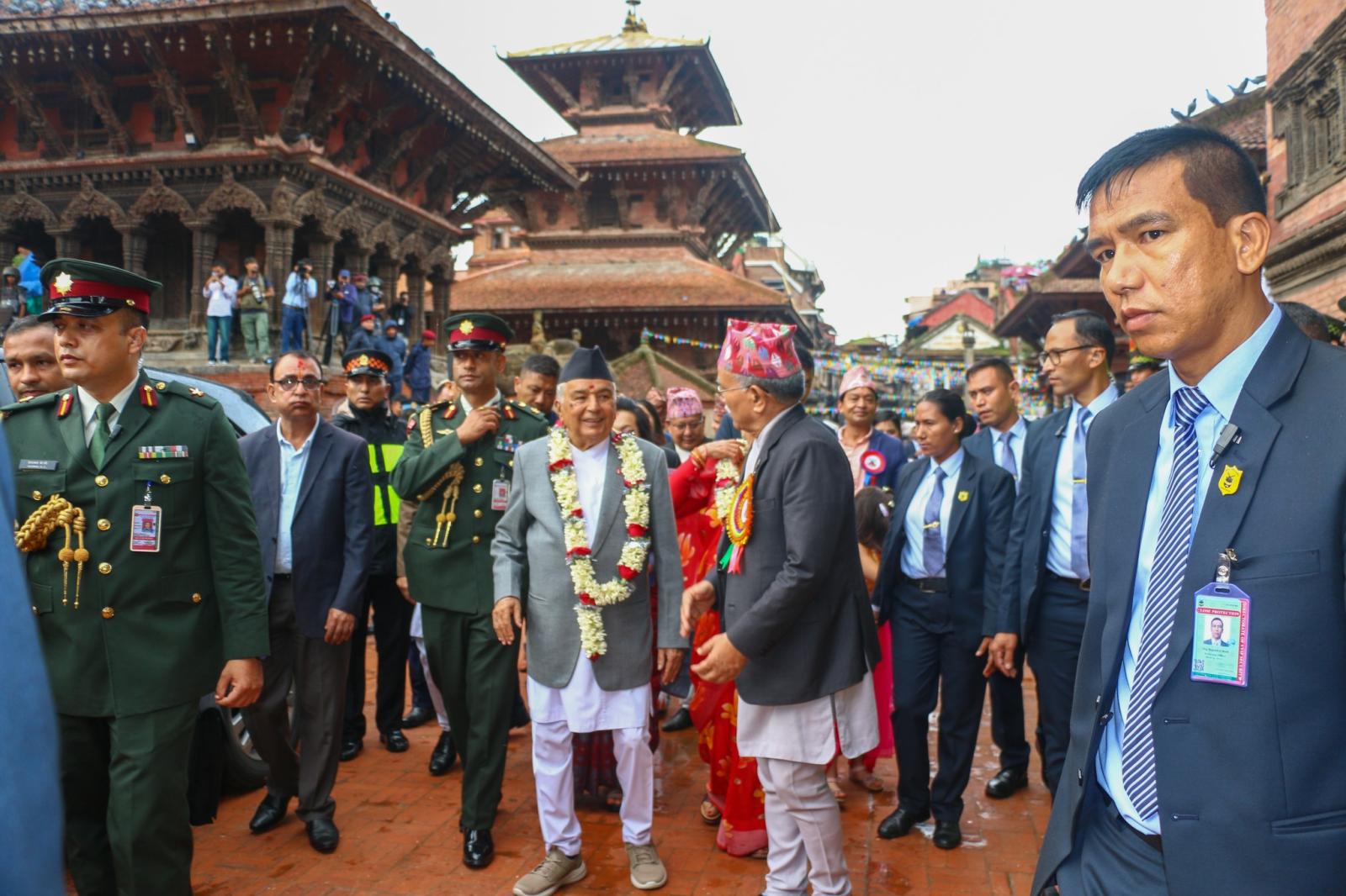 राष्ट्रपतिलाई मन्दिर परिसरमा ललितपुरबाट निर्वाचित संघीय संसद्का सदस्य, बागमती प्रदेशका कृषिमन्त्री मधुसूदन पौडेल, वाग्मती प्रदेशसभा सदस्य, ललितपुर महानगरपालिकाका प्रमुख चिरीबावु महर्जन, ललितपुरका प्रमुख जिल्ला अधिकारी रमेशप्रसाद ढकाल, महानगर उपप्रमुख मञ्जली शाक्य बज्राचार्य, सहायक प्रमुख जिल्ला अधिकारी गीता घिमिरे, महानगरका प्रमुख प्रशासकीय अधिकृत रेखादास श्रेष्ठलगायत नगरवासीले स्वागत गरेका थिए ।
