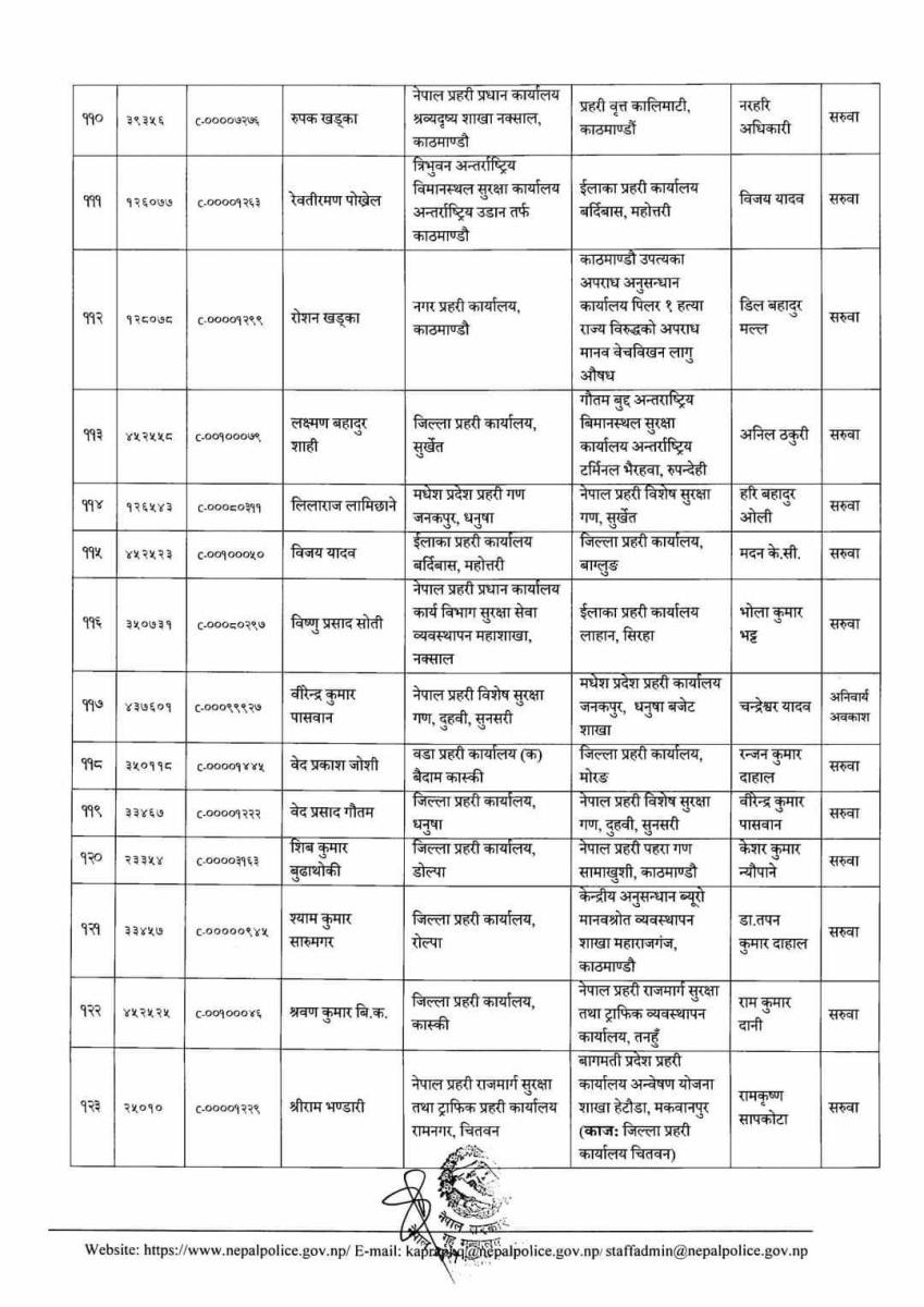 बुधबार प्रहरी महानिरिक्षकको निर्णय अनुसार चैत महिनादेखिको तलब, भत्तासमेत हाल भएको दरबन्दीबाट खान पाउने गरी सरुवा गरिएको मुकुन्द प्रसाद रिजालले बताउनुभयो।