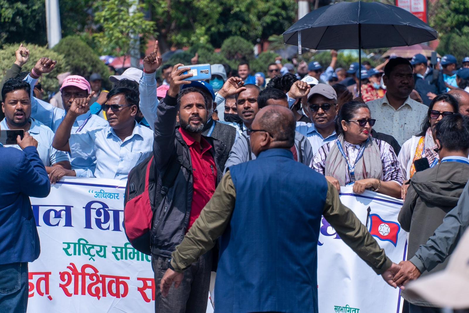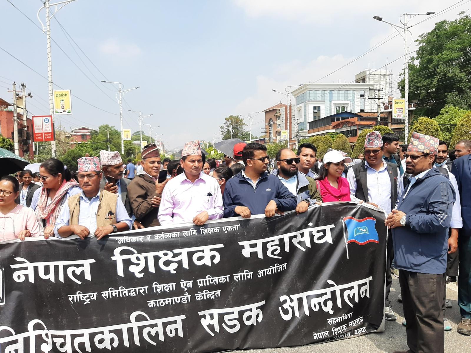 नेपाल शिक्षक महासंघको अगुवाइमा भइरहेको आन्दोलनमा तत्काल शिक्षा ऐन जारी गर्न माग गरिएको छ । राप्रपाको पनि विरोध प्रदर्शनको कार्यक्रम रहेकाले विहान नौं बजे नै मण्डलामा जम्मा भएका हुन् ।