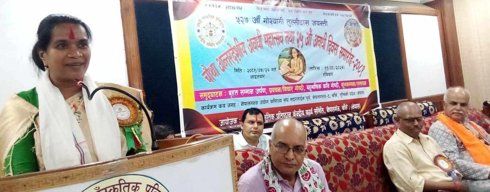 पवन जायसवाल, नेपालगन्ज (बाँके) साउन २७ । बाँकेमा अवधी तथा हिन्दी भाषा सँस्कृतिका महान पण्डित, भक्त कवि, सन्त शिरोमणि तुलसीदास जी महाराजको ५२७औं तुलसीदास जयन्ती, चौथा अन्तरदेशी कार्यक्रममा प्रतिष्ठानका केन्द्रिय सचिव डा.पंकज कुमार गुप्ताले स्वागत मन्तव्य, उपाध्यक्ष सुशीला बैश्यले गणेश बन्दना र सरस्वती बन्दना डा.प्रवीण कुमार पाण्डेय आवाराले प्रस्तुत गर्नु भएको थियो ।