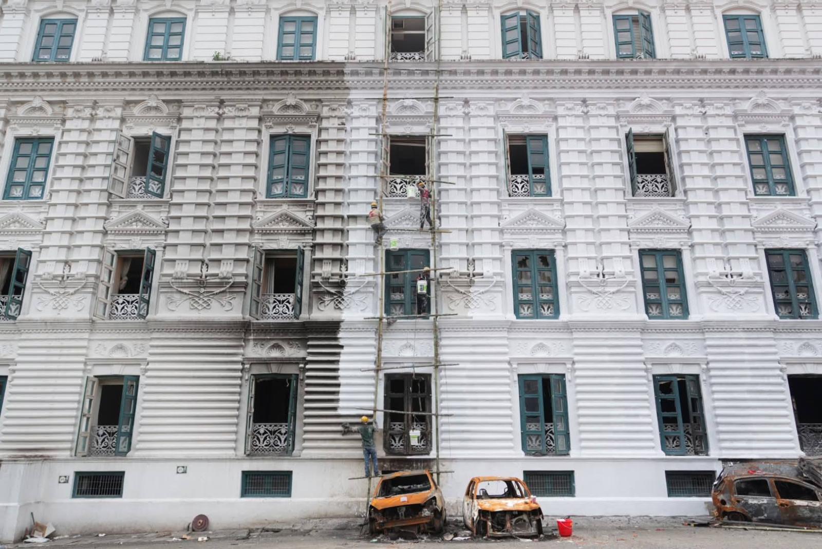 मर्मत र रङरोगनका लागि केही श्रमिक खट कस्दै गरेका छन्भने कोही रङ लगाउन व्यस्त छन् । तोडफोड भएका झ्यालढोका मर्मतसम्भार गर्ने, टेबुल, कुर्सी, सोफालगायतका फर्निचर जलेर खरानी भएकाले ती फोहर हटाउन श्रमिकहरु तल्लीन भएको दखिन्छ ।