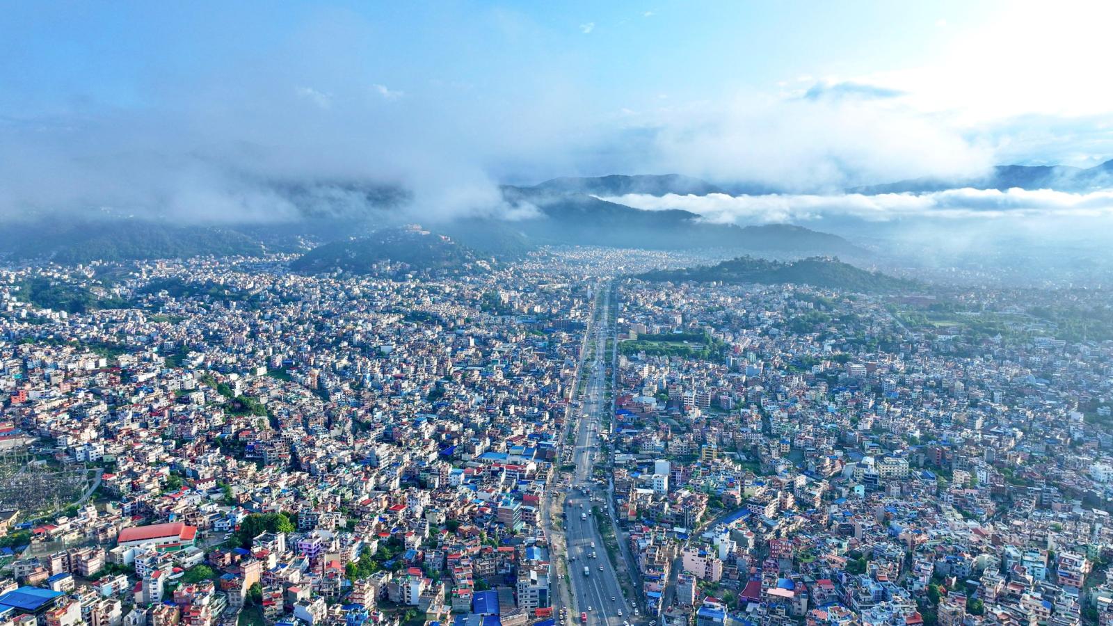 रातभरको वर्षा भएपछि विहानको घामले बाक्लो बादललाई मेटाएर घामको किरण पर्दा उपत्यकाको बाक्लो बस्ती निकै सुल्दर देखिएको छ ।