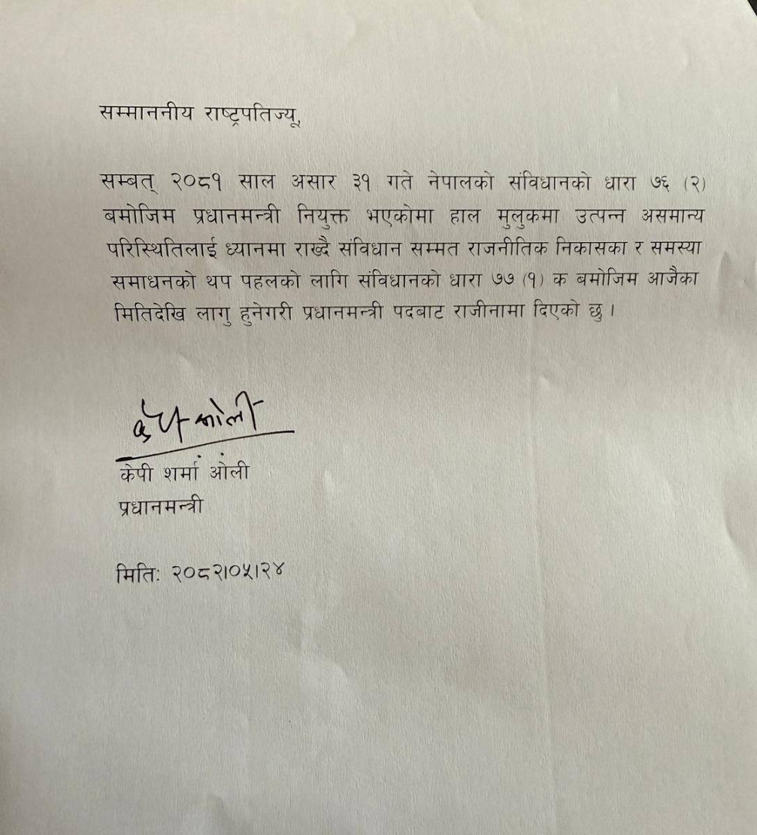जेनजीको आव्हानमा भएको आन्दोलन नियन्त्रणबाहिर गएपछि प्रधानमन्त्रीले राजीनामाको घोषणा गरेका हुन् ।