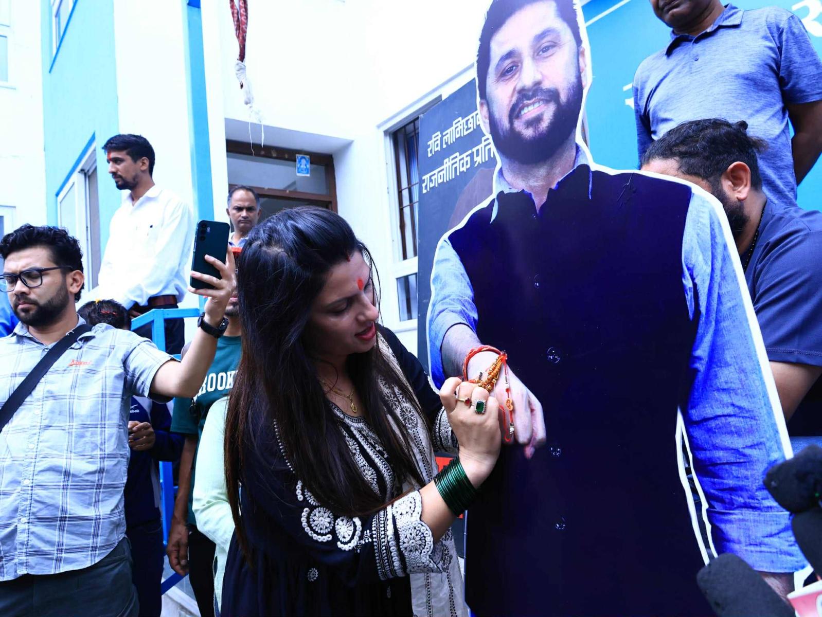 रविको ‘कट आउट’ मा राखी बाधेर मनाए समर्थक