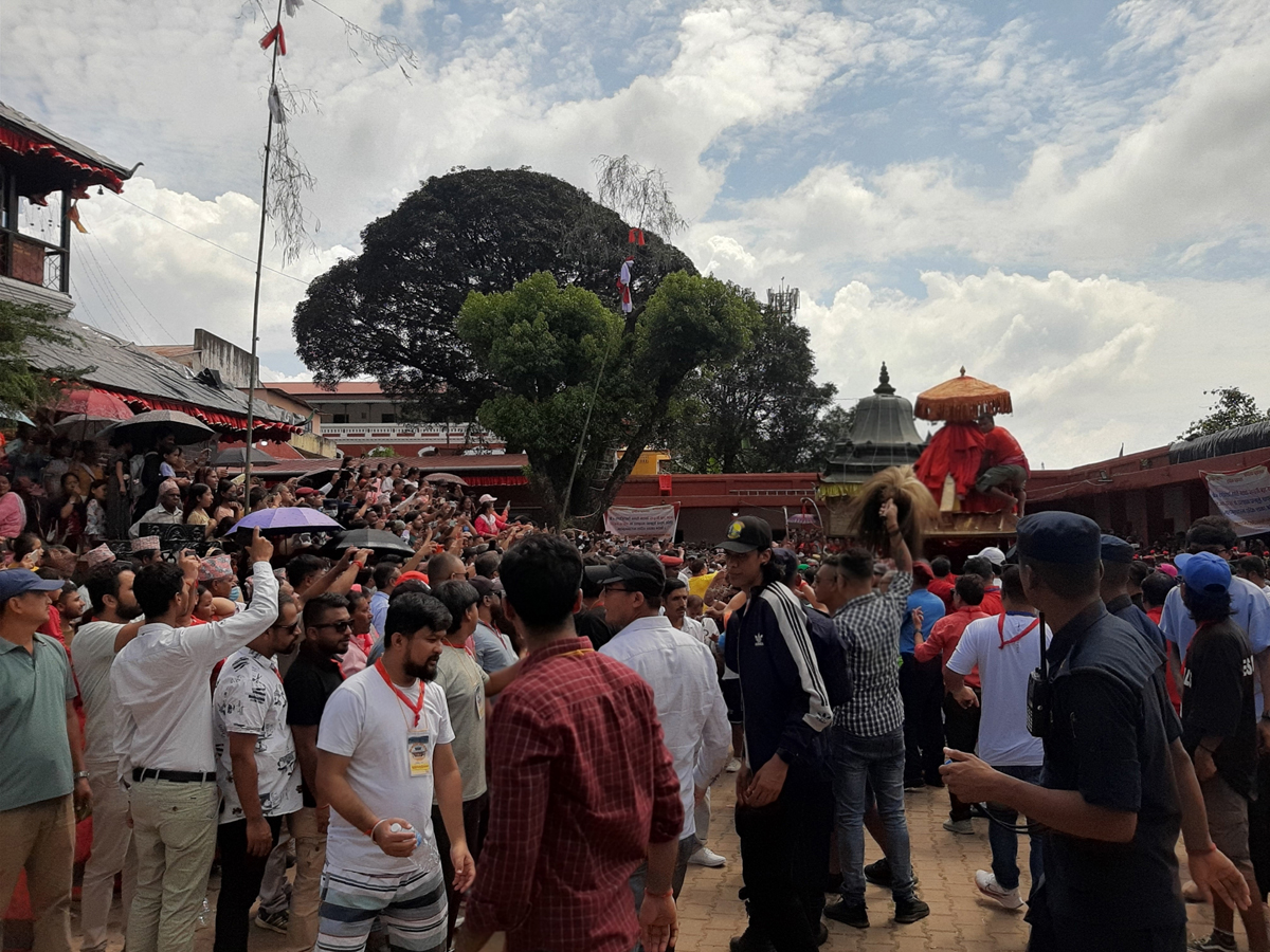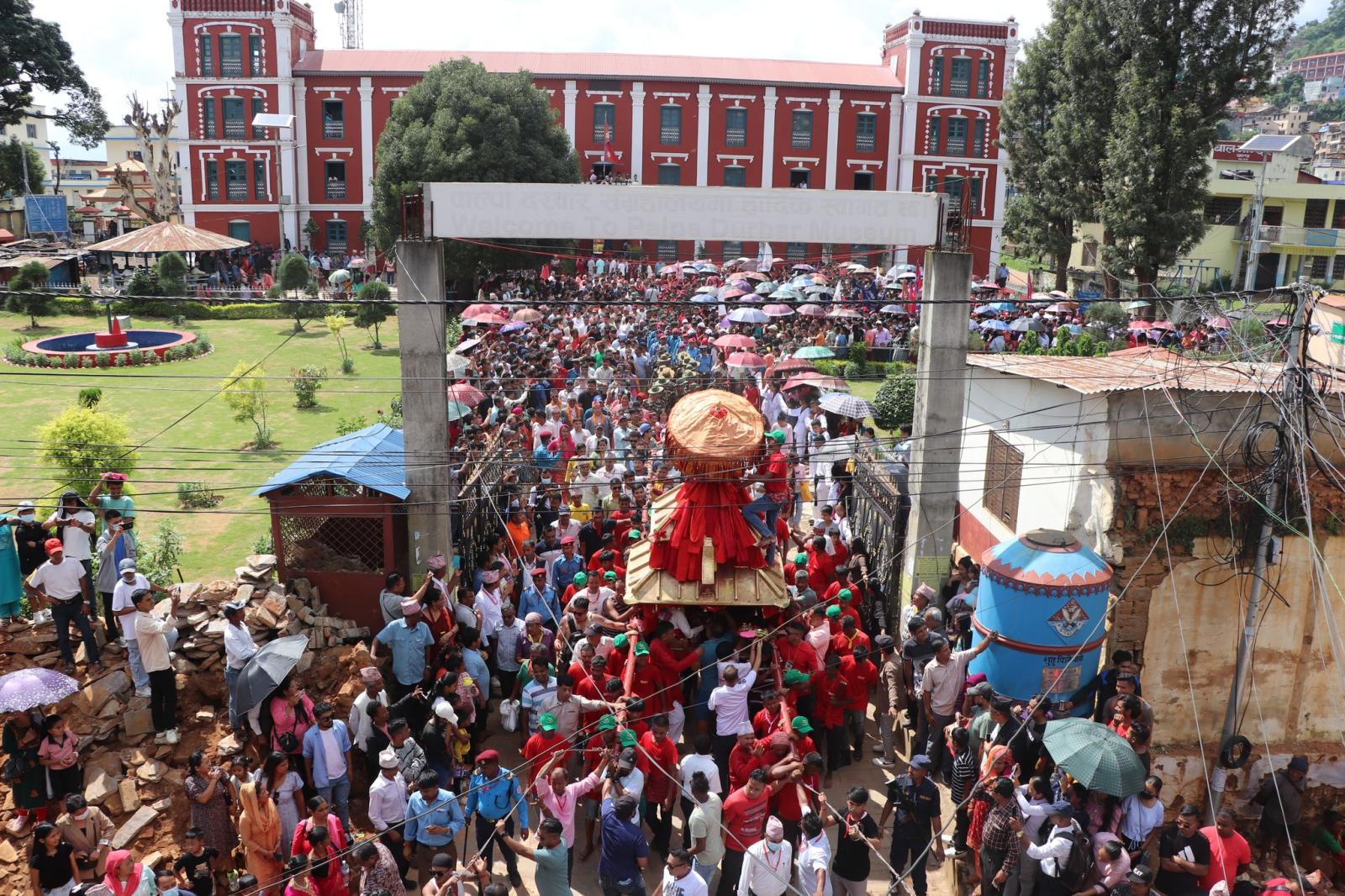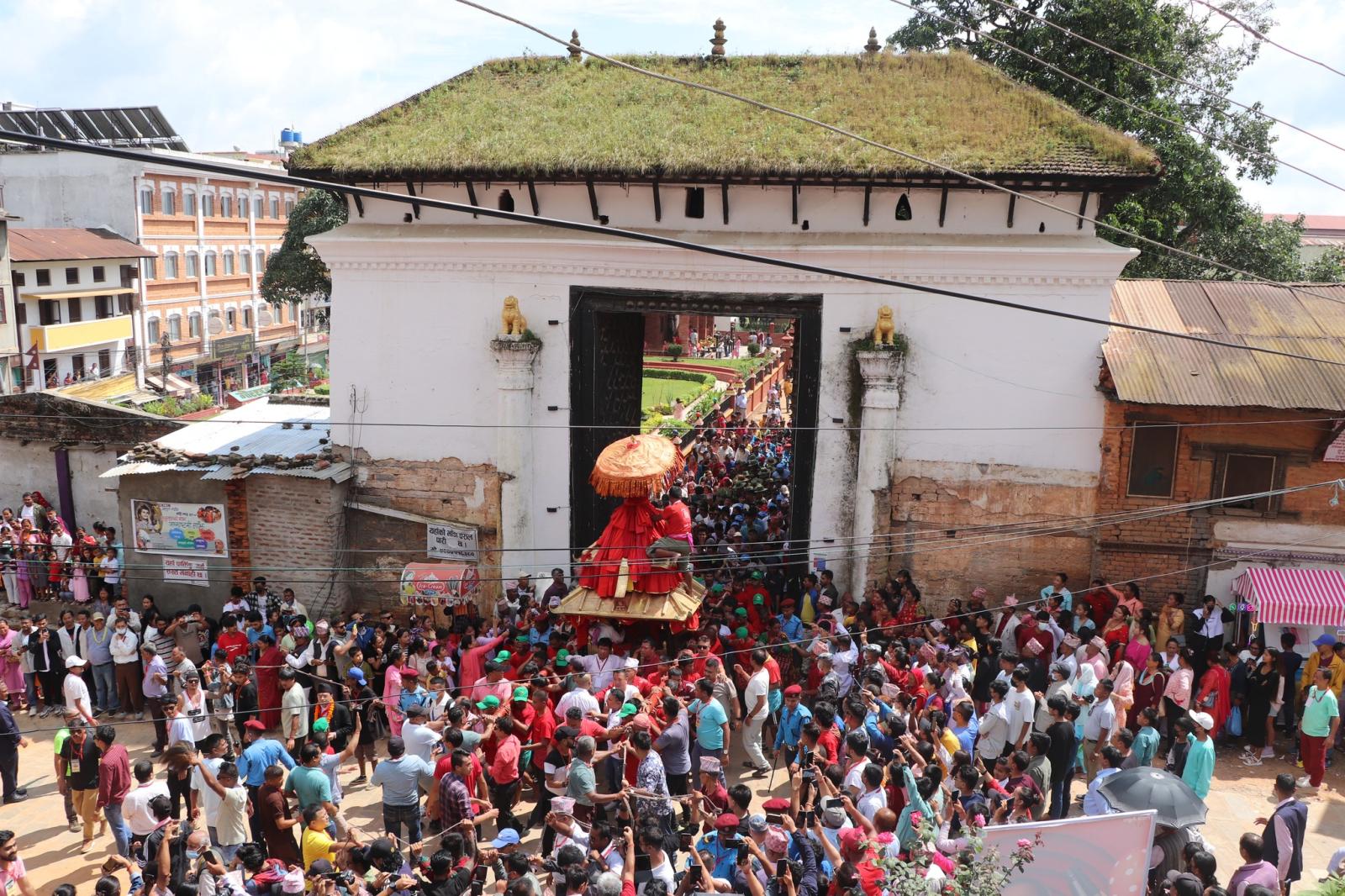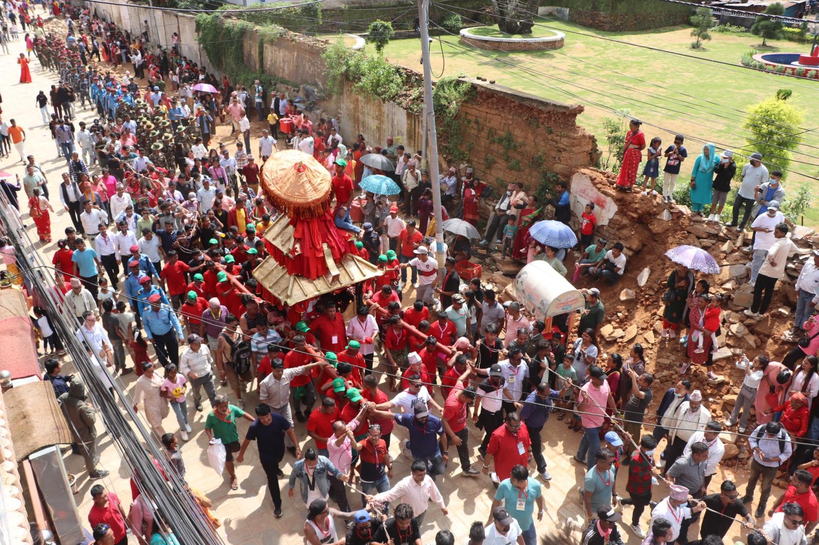 कुमाल जातिका जवानले १२: ३0 मा भगवतीको प्रतिमूर्ति राखिएको रथलाई उठाएर नगर परिक्रमा गराइएको छ । भगवतीको रथको दुवैतिर तेर्साईएका दुई बलिया नोलहरुलाई काँधमा बोकी जयजयकारको गुञ्जन ध्वनी र बन्दुकको बडाइका साथ मूर्तिलाई रथमा राखेर नगर परिक्रमा गरिएको छ । जात्रा अवलोकन गर्नेको विभिन्न जिल्लाबाट दर्शकको ठूलो भिड लागेको थियो ।