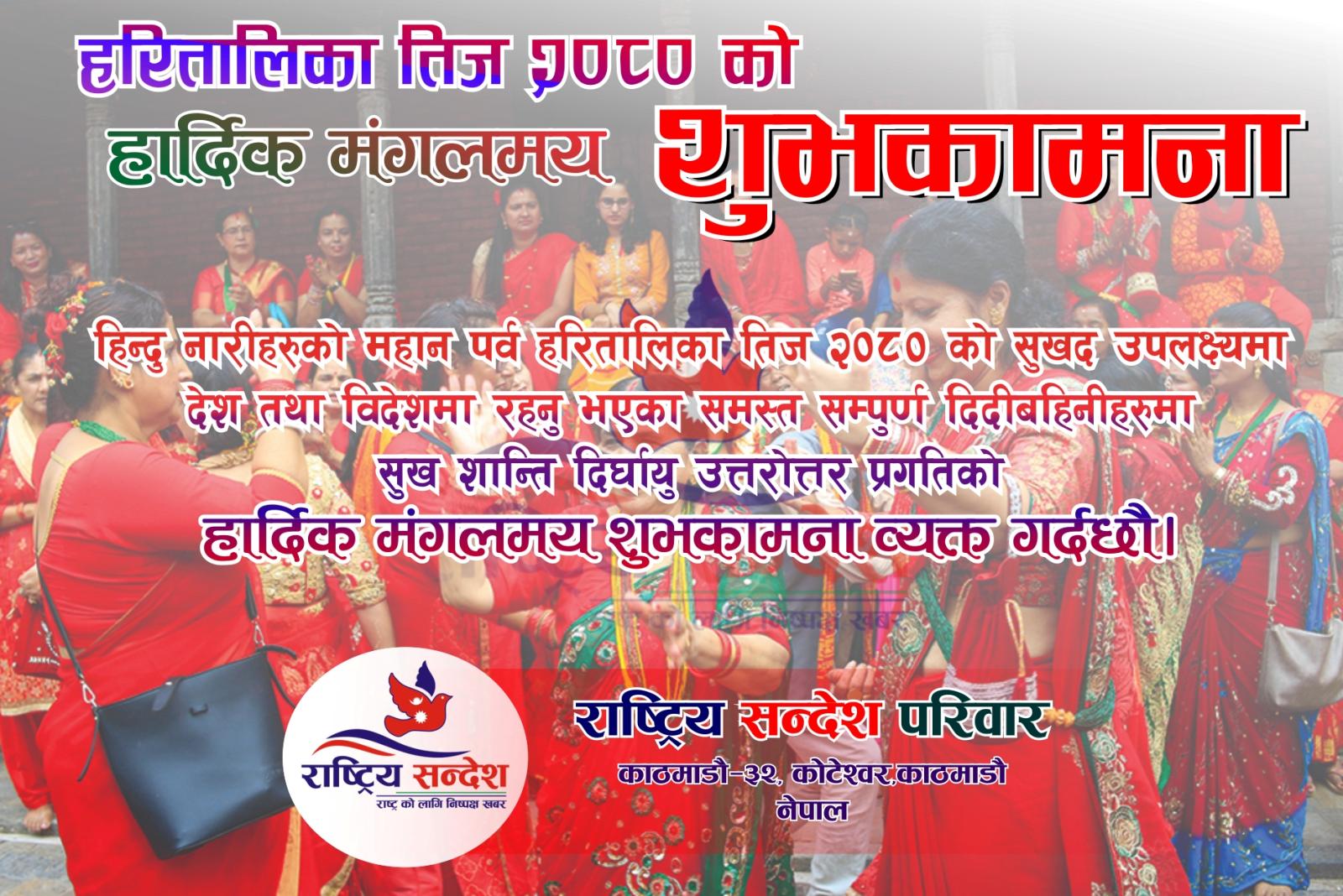 नेपाली महिलाहरुको महान चाड हरितालिका तिजको अवसरमा तथा देश बिदेशमा रहनुभएका सम्पुर्ण महिला दिदिबहिनीहरुमा हार्दिक शुभकामना व्यक्त गर्दछौ।