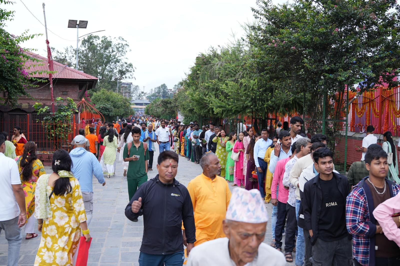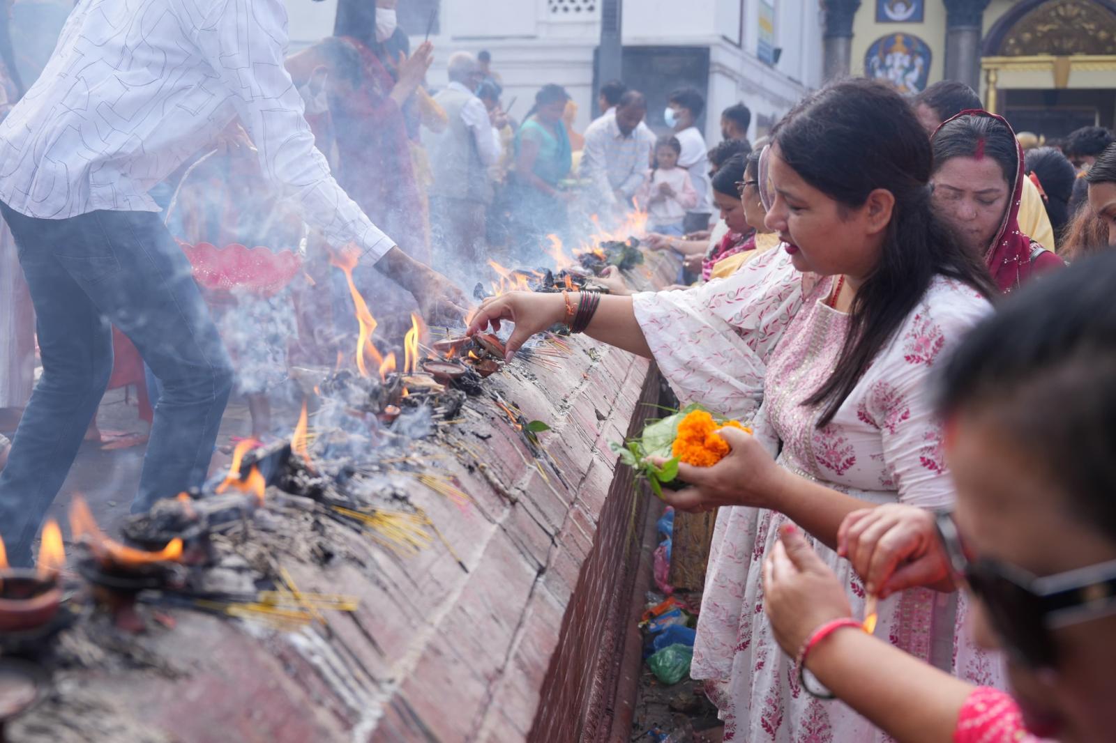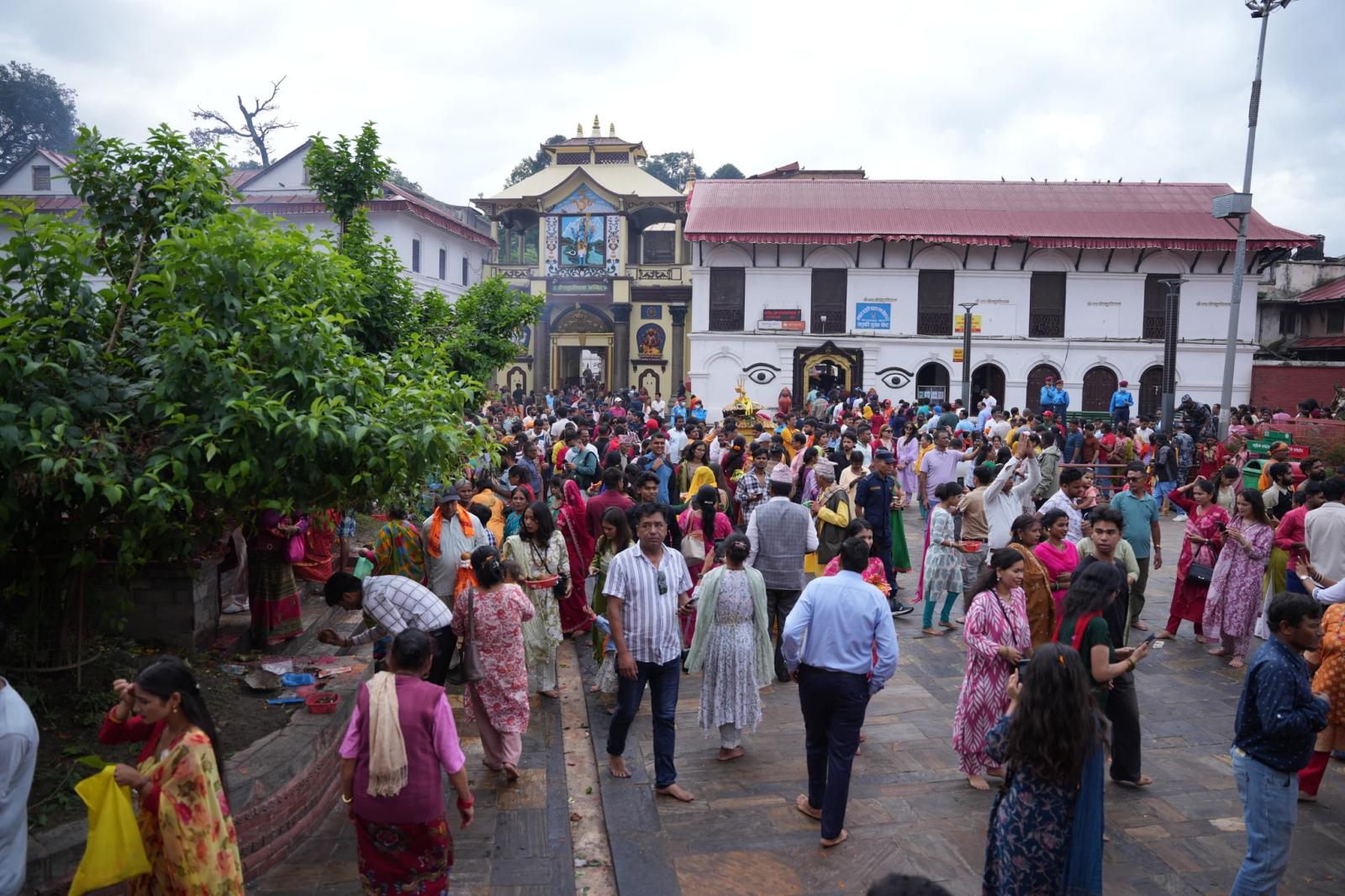 २०८२ साउन १९, काठमाडाैं । साउनको तेस्रो सोमबार आज काठमाडौँको पशुपतिनाथ मन्दिर परिसरमा भगवान् शिवको पूजा आराधना गर्दै भक्तजन । आज पशुपतिनाथ मन्दिरमा पूजाअर्चना तथा दर्शन गर्न भक्तजनको घुइँचो लागेकाे छ ।
