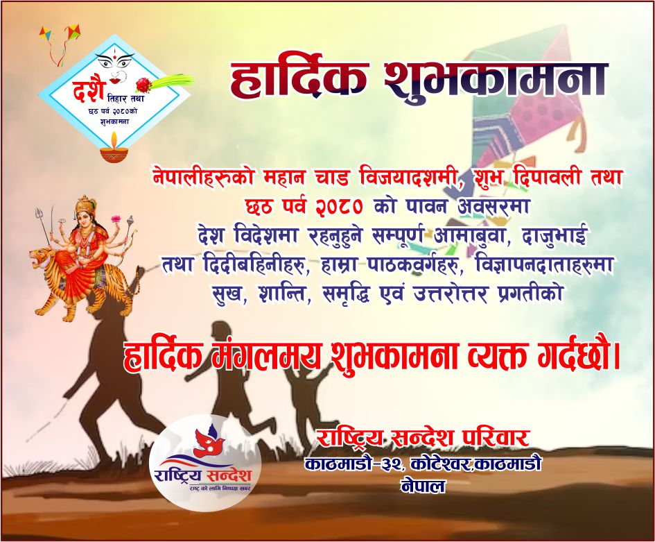 राष्ट्रिय सन्‍देश संबाददाता, मंगलवार, ७ कार्तिक, २०८०