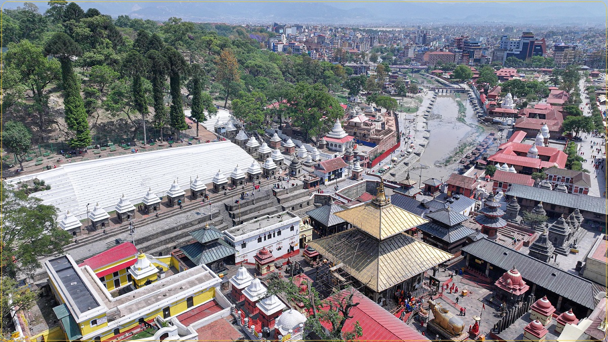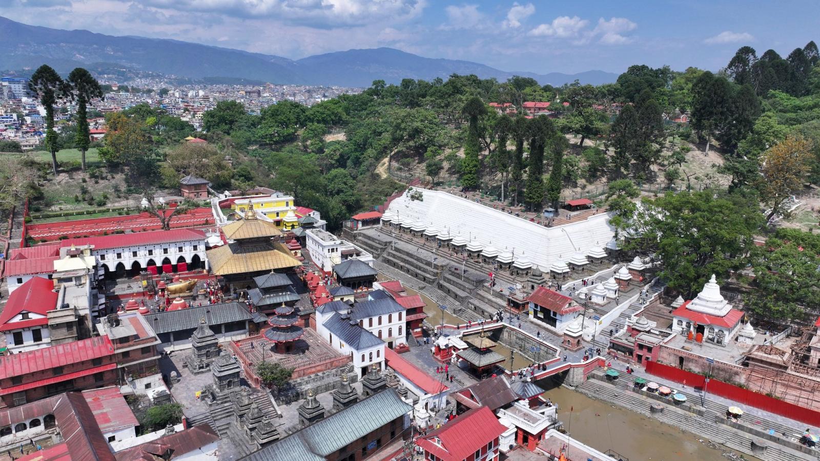 पशुपतिनाथ मन्दिर आकाशबाट हेर्दा झन् भव्य देखिन्छ। सुनौलो गजुर, हरियाली परिवेश र ऐतिहासिक संरचनाले यो स्थललाई अझ मनमोहक बनाउँछ ।