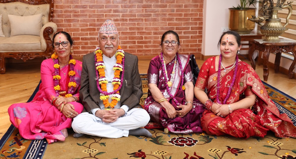 प्रधानमन्त्री केपी शर्मा ओलीले पनि बहिनीहरु विष्णुमाया ढकाल, कौशिला कोइराला र विष्णु ओलीको हातबाट शुभसाइतमा टीका लगाएका छन् । प्रधानमन्त्री ओलीले आज बालुवाटारस्थित सरकारी निवासमा बहिनीहरुबाट भाइटीका लगाएको प्रधानमन्त्री ओलीको स्वकीय सचिवालयले जनाएको छ ।