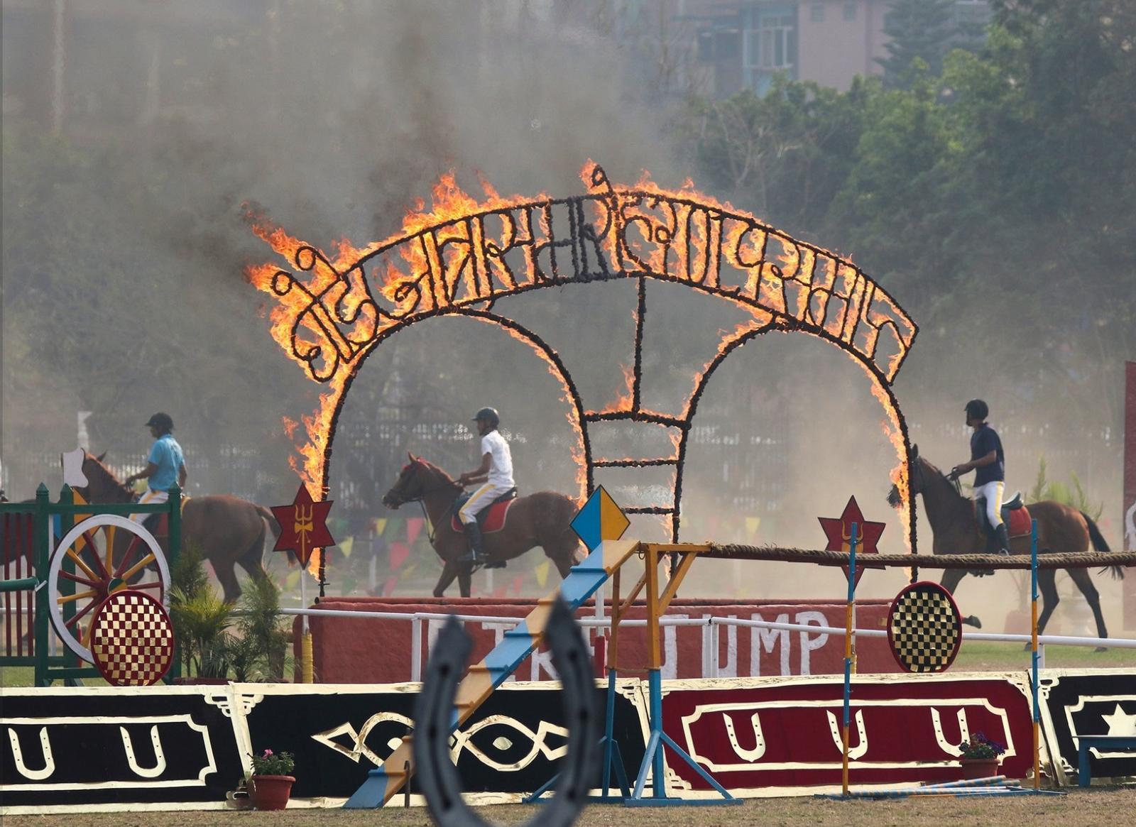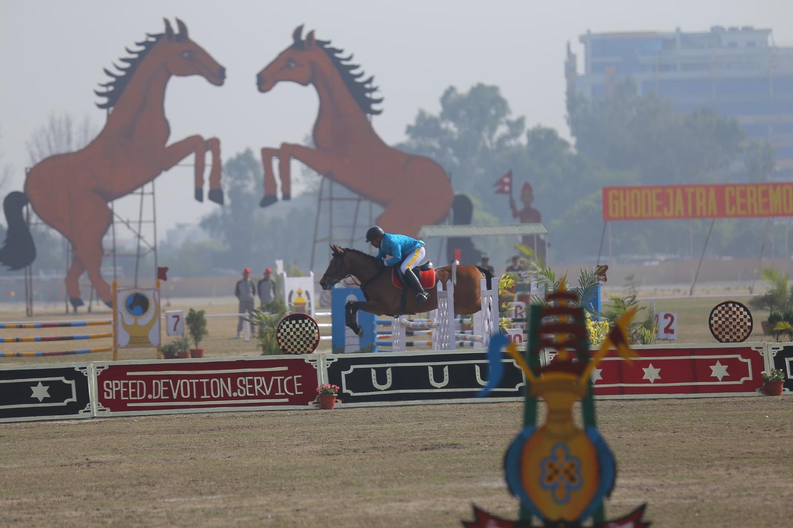 घोडेजात्रामा सैनिकहरुले विभिन्न व्याण्डद्धारा धुनहरु प्रस्तुत गरेका थिए भने घोडाहरुद्वारा शो जम्प प्रस्तुत गरेको थियो । यो प्रस्तुतीमा घोडाहरुले विभिन्न पर्खालहरु नाघेका थिए। साहाशिक सेनाहरुले घोडाको चालको गतिमा विभिन्न पर्खालहरु उफ्रेर अगाडि बढेका थिए ।