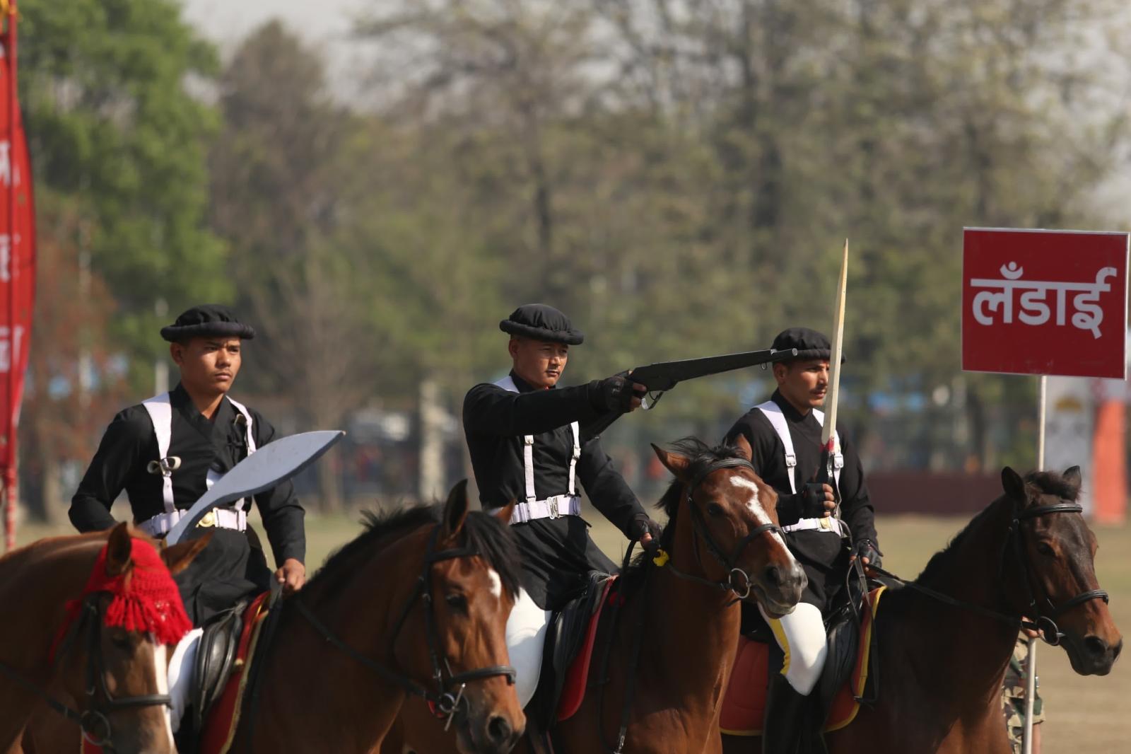१६ चैत्र २०८१, काठमाडौं । नेपाली सेनाले शनिवार टुँडिखेलमा घोडेजात्रा पर्व मनाएको छ । सेनाले एक विशेष समारोहको आयोजना गरेर घोडेजात्रा पर्व मनाएको हो ।